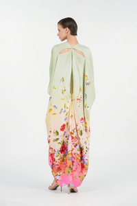 ID: WQT182-OZR32-D0509 This silk kaftan captures a feeling of pure visual poetry, turning every movement into an ode to the beauty of nature. Perfect for anyone who wants to wrap themselves in a dream of color and lightness. Details - Floral print that enchants and seduces - Fluid, enveloping silhouette - Nature-inspired design details - Silk fabric that gently caresses the skin - A statement of timeless elegance
