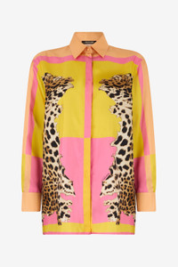 ID: WQT704-OZR33-01000 A wearable work of art, this silk shirt channels bold, vibrant elegance. Its play of vivid colors and leopard print creates an irresistible contrast, while the classic silhouette adds a touch of timeless sophistication. Perfect for anyone who wants to stand out with style and personality. Details - Leopard print on a bold colored background - Timeless classic silhouette - Striking and vibrant details - Refined elegance without compromise
