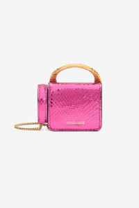 ID: UKA004-PZ579-D2385 A shiny texture with a snake scale effect and two bejeweled tigers form the handle: this is how Roberto Cavalli pays tribute to its distinctive style in this cell phone holder, where the functional edge is provided by the removable chain strap with leather shoulder pad. On the back, the accessory is embellished with the Maison's signature logo. Details - Cell phone holder with square design - Made from metallic leather with snake-scale effect - Handle on top formed by bejeweled tigers - Clasp-removable chain strap with leather shoulder pad - Magnetic flap fastening - Roberto Cavalli logo on the back - Lined interior Care & maintenance Leather - Fur:Aegagrus Hircus / Lining:60% Polyester, 40% Polyurethane
