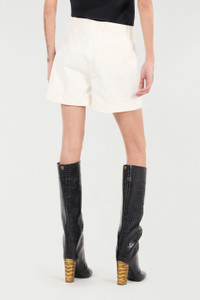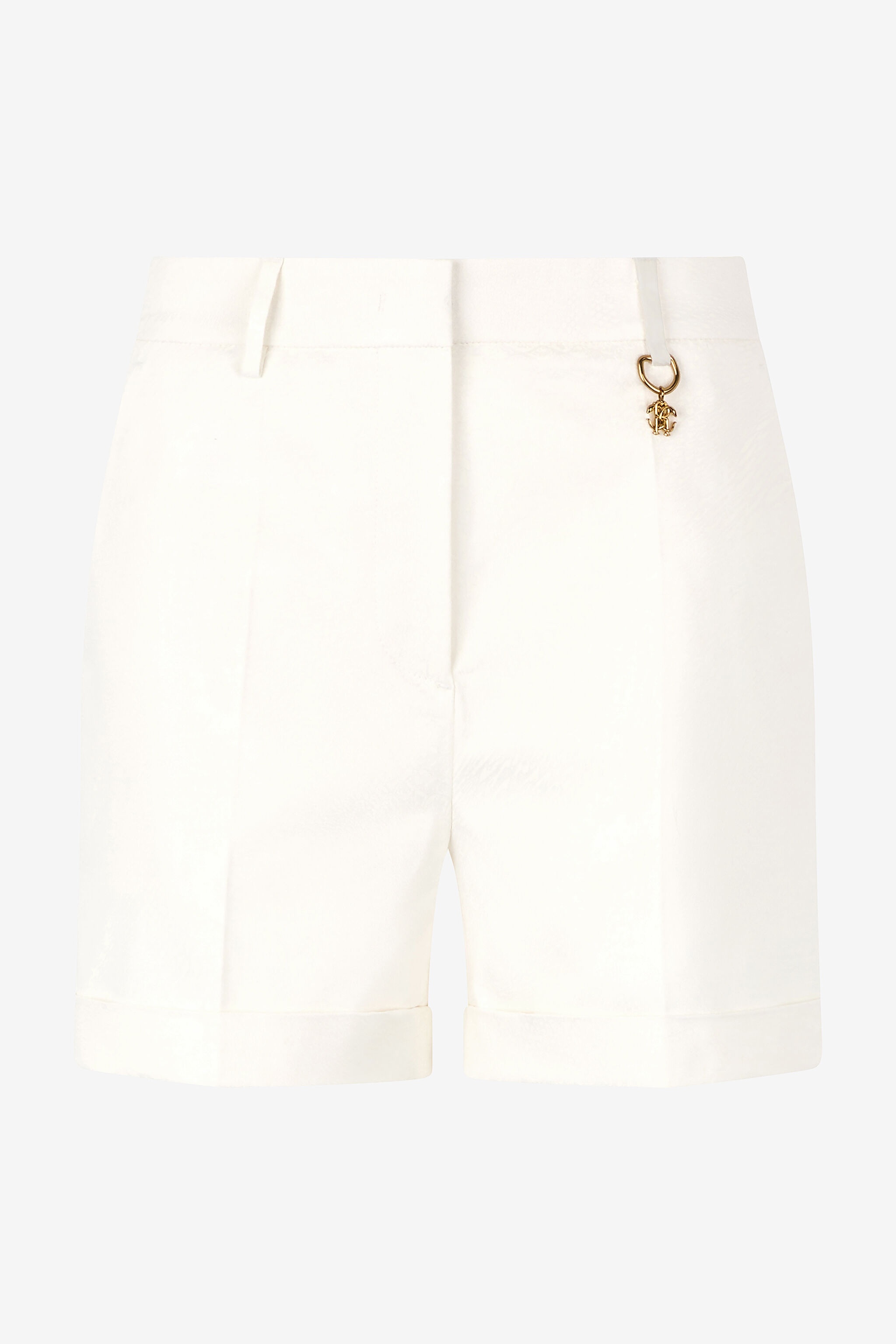 ID: UKT214-4NN53-09088 The wild elegance of the reptilian world, which has always been a source of inspiration for Roberto Cavalli, is fully expressed in these women's shorts featuring a delicate solid-color all-over python leather-effect print and embellished with a gold charm in the shape of the iconic Mirror Snake Monogram on the belt loop. Details - Stretch cotton shorts - Lined - All-over tonal python leather-effect print - Belt loops - Golden charm with Mirror Snake Monogram on a belt loop - One double-welt back pocket Care & maintenance External fabric:97% Cotton, 3% Elastane / Lining:55% Viscose / Rayon, 45% Polybutyleneterephthalate