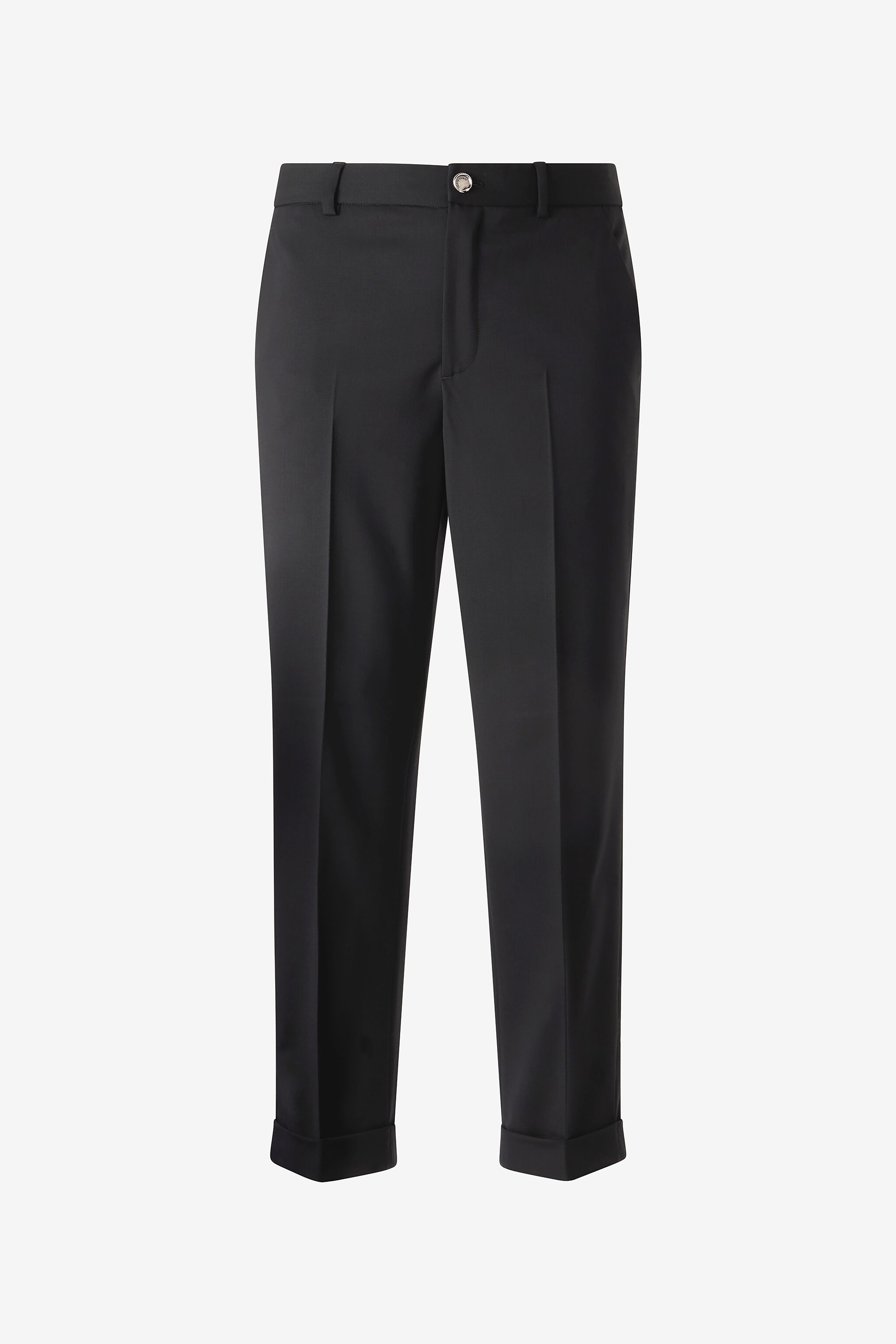 ID: URT247-WP066-05051 These men's stretch wool pants from Roberto Cavalli are the emblem of effortless elegance. Thanks to the clean and understated design, which is elevated by refined details, such as the pressed pleat and double-welt pockets on the back with branded button, they will be the ace up your sleeve to complete both the most casual and the most formal looks. The model is complemented by the slanted side pockets, the belt loops and the branded front button fastening, which ensures comfort and practicality. Details - Stretch wool pants - Lined - Straight leg - Belt loops - Slanted pockets - Double-welt back pockets with branded button - Front and back pleat - Front branded button fastening Care & maintenance External fabric:95% Virgin wool, 5% Elastane / Lining:100% Viscose / Rayon