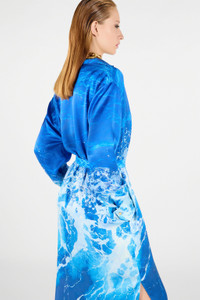 ID: UWT133-RYN94-04927 The Stretto di Messina dress is an ode to the beauty of the sea. The exclusive print captures the essence of the waves in an elegant and contemporary design. With its flowing silhouette and matching belt, this dress enhances the feminine figure with a touch of sophistication. The model is 178 cm tall and wears size S / 40. Details - Elegant and refined design - Exclusive Stretto di Messina print - Matching fabric belt included - Made in: Italy - Ideal for special events or a sophisticated everyday look - Perfect paired with jewel sandals or classic pumps Care & maintenance External fabric:100% Silk