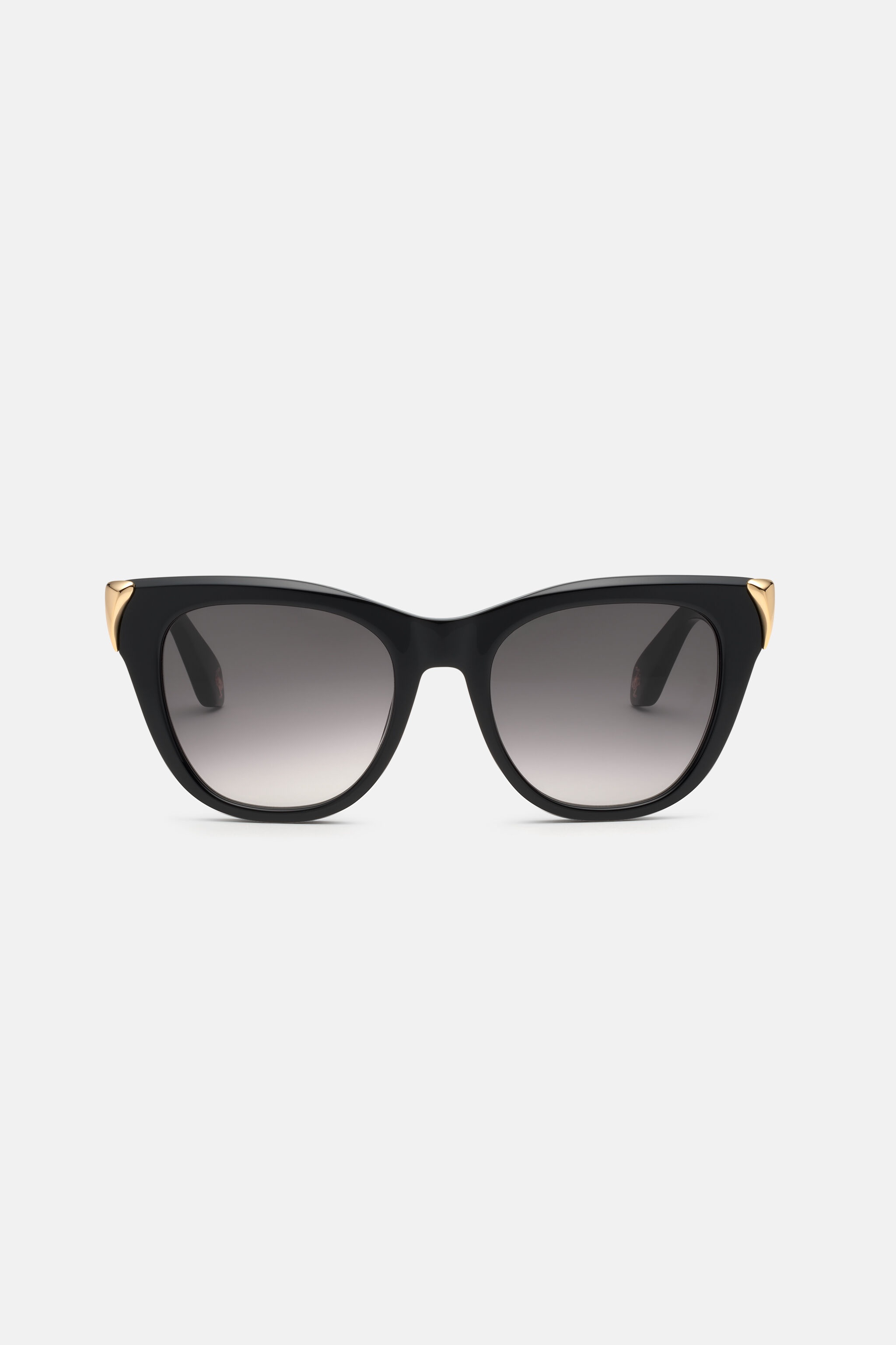 ID: ALD029-ID189-D9889 Feminine cat-eye shape of the front. Two small fangs in metal are applyed on both sides of the front, for a very captivating style. Details - Sunglasses Roberto Cavalli - Fang collection - Fangs on the front and temples - Made in italy - Lenses 52mm Bridge 20mm Temples 140mm - ID: SRC095M540700 Care & maintenance Composition:Acetato, Polyester