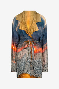 ID: UWT400-4QN96-05144 The Sunrise print jacket captures the magic of a sunrise over the sea, turning a garment into a wearable work of art. The enveloping design and waist belt enhance the silhouette, offering a comfortable and refined fit. Worn by our model, who is 178 cm tall and wears size S/40, this jacket is ideal for those who want to express their individuality with a touch of luxury and originality. Details - Design with waist belt - Structured collar - Long sleeves - Made in: Italy - Perfect for an evening event or special occasion - Ideal to combine with palazzo pants or a midi skirt