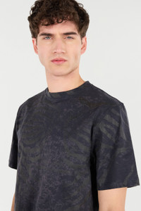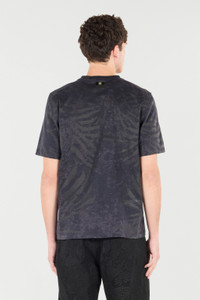 ID: URT61J-3PN55-Z0577 Roberto Cavalli continues the tradition of animal-print pieces that has always distinguished it, creating this half-sleeved crew-neck T-shirt featuring an animal print with an attractive all-over distressed effect. This pure cotton style is embellished with a small label with the Mirror Snake Monogram on the back, a symbol of the brand’s essence. Details - Pure cotton T-shirt - All-over animal print - Crew neck - Roberto Cavalli label on the inside collar - Half sleeves - Label with Mirror Snake Monogram on the back below the neck Care & maintenance External fabric:100% Cotton