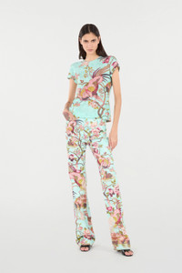 ID: VKT61A-3DP76-D1961 Add a touch of creative luxury to your everyday outfits with this pure cotton T-shirt by Roberto Cavalli, embellished with a refined and colorful print with flowering branches and pheasants, arranged in contrast on a background with the iconic Python motif in a monochrome version. Details - Pure cotton T-shirt - All-over print with flowering branches and pheasants - Monochrome Python pattern in the background - Crew-neck - Short sleeves - Roberto Cavalli label on the inside collar - Made in Italy