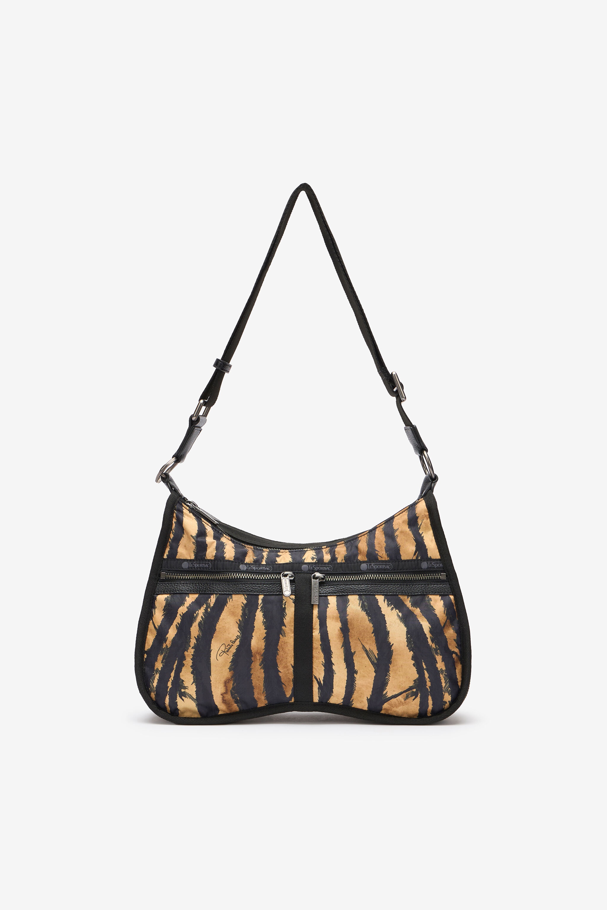 ID: ULL005-IL005-E0472 A statement-making Freedom Rum Torino bag featuring a bold tiger-stripe print and a sleek curved silhouette. Multiple zippered compartments provide secure storage, while the adjustable strap offers versatile carrying options. Purchase this eye-catching bag today for a stylish and functional addition to your wardrobe. Details - A collaboration between Roberto Cavalli and LeSportSac - 7.5H x 14W x 5D (7.25D Expanded) in, 19H x 35.6W x 12.7D (18.5D Expanded) cm Care & maintenance External fabric:100% Polyester / Secondary fabric:100% Polyurethane / Lining:100% Polyester
