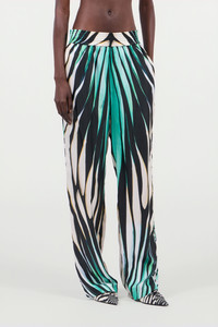 ID: VRT265-4QP35-04505 Embrace the bold elegance of Italian craftsmanship with the Tropical Elegance Palazzo Pants by Roberto Cavalli. These luxurious trousers feature a captivating print reminiscent of tropical foliage, blending vibrant greens with striking black and white stripes. Designed for the confident and stylish individual, they offer a flowing silhouette that exudes modern glamour and sensuality, perfect for making a statement at any occasion. Details Step into a world of bold sophistication with the Tropical Elegance Palazzo Pants from Roberto Cavalli. Crafted to celebrate the spirit of Italian artistry, these pants are a visual masterpiece. The design captures the essence of lush, tropical landscapes, infused with a dynamic mix of colors that mesmerize and captivate. The flowing silhouette ensures comfort and movement, while the striking pattern showcases unique creativity and contemporary style. Perfect for those unafraid to stand out, these trousers are an embodiment of glamour and confidence. Pair them with a simple top or daring blouse for an unforgettable look. Care & maintenance External fabric:100% Silk