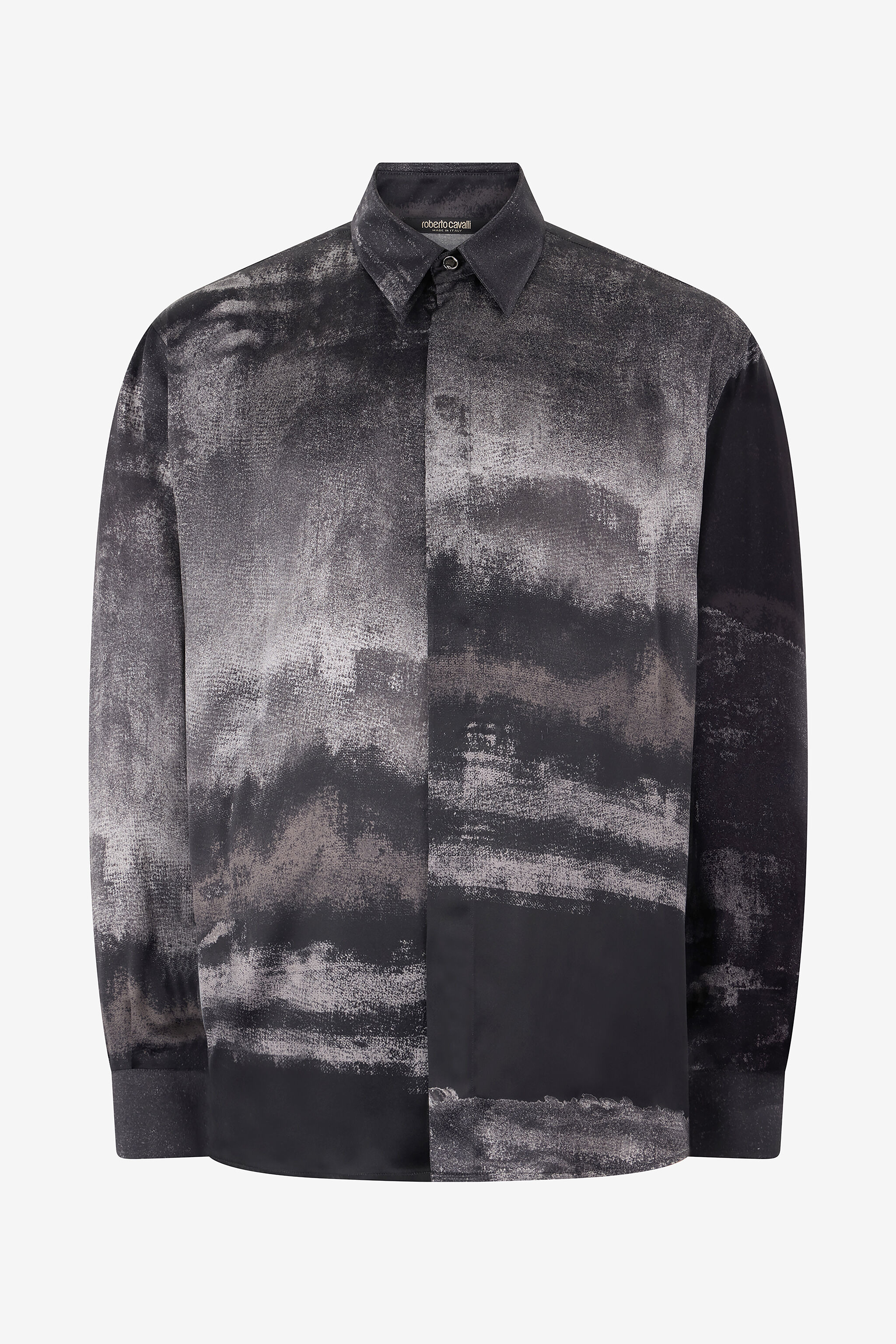 ID: VNT714-SZP69-05014 A timeless classic in the men’s wardrobe, reimagined in the Roberto Cavalli style: this shirt entirely made in Italy in pure silk features a gradient pattern with a used effect that animates the entire surface of the garment. The design is completed by the branded snake buttons on the hidden front fastening and on the cuffs, for a tribute to the Maison's distinctive style and the charm of the reptile universe. Details - Pure silk shirt - Used-effect gradient motif - Pointed collar - Long sleeves - Branded button with snake on the hidden front fastening and on the cuffs - Rounded hem - Roberto Cavalli label on the inside collar - Made in Italy