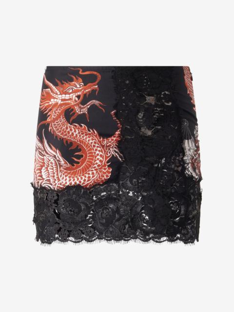 Silk Mini Skirt with All-Over Dragon Print