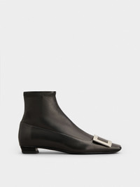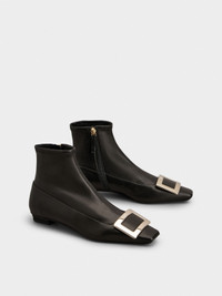 Launched in 1965, the Belle Vivier is one of the Maison's most famous designs. Becoming an icon thanks to its buckle and Skyscraper heel, its reinterpretations make it a new classic. Crafted in soft nappa leather, with stretch bootleg and zip on the inside, these booties combine comfort and elegance. The perfect ally of your days. FEATURES - Ovine leather - Elastic bootleg - Metal buckle - Zip on the inside - Leather insole - Leather outer sole - Covered Skyscraper heel - Heel height 1 in - Made in Italy RVW00725610QG0B999