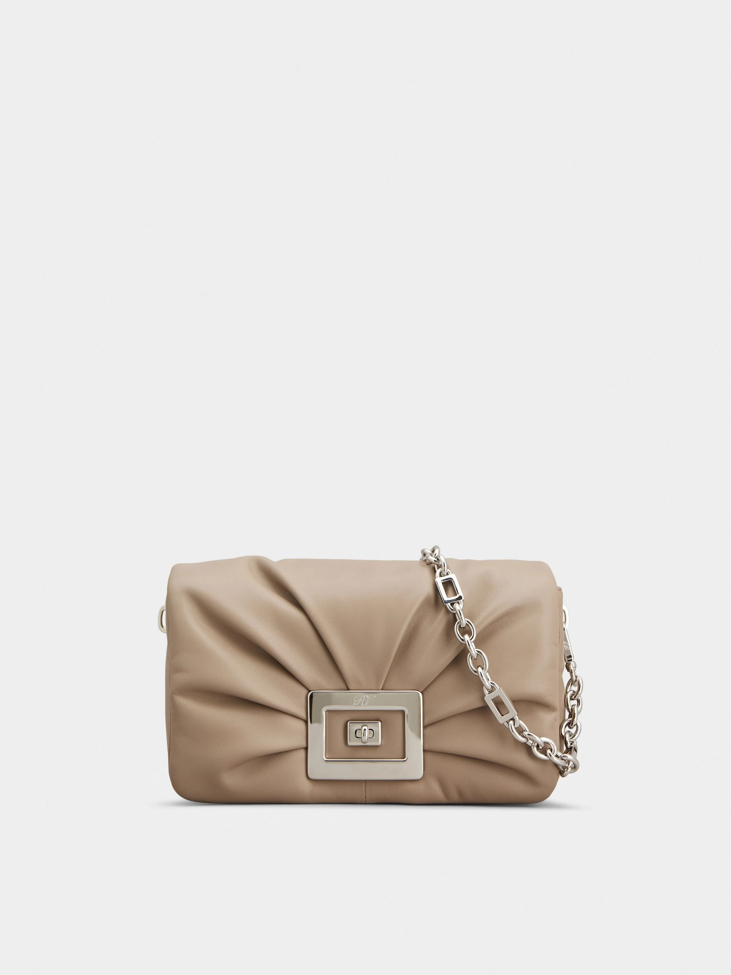 Our iconic metal buckle is an emblem of elegance and femininity. Its sophisticated and timeless allure is expressed in this bag in nappa leather, with a soft draped flap. Featuring a back pocket, it can be worn whether with the practical shoulder strap, or the branded link chain. The final touch to a metropolitan woman's allure. Description & details Dimensions: L 9.8 ins x H 4.7 ins x D 2.4 ins Ovine nappa leather Adjustable and removable shoulder strap Removable chain in metal Metal buckle Turn-lock closure Leather lining Back pocket Internal zipped pocket Made in Italy Mod: RBWAORJ0200YDRC415