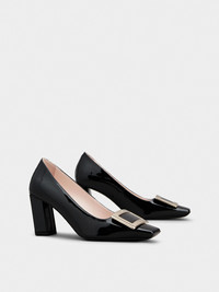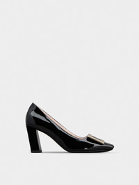 Belle Vivier Metal Buckle Pumps in Patent Leather