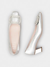 Launched in 1965, the Belle Vivier is one of the Maison's most famous designs. Becoming an icon thanks to its buckle and Skyscraper heel, its reinterpretations make it a new classic. Crafted in crinkled effect metallic leather, these refined pumps are the perfect ally for your days. FEATURES - Ovine leather - Crinkled effect metallic finishing - Crystal buckle - Leather insole - Leather outer sole - Covered Skyscraper heel - Heel height 1.8 ins - Made in Italy RVW00602220T0HB200