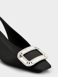 Launched in 1965, the Belle Vivier is one of the Maison's most famous designs. Becoming an icon thanks to its buckle and Skyscraper heel, its reinterpretations make it a new classic. Crafted in satin at our ateliers, these slingback pumps are the perfect ally of your days. FEATURES - Silk blend satin - Crystal buckle - Heel strap - Satin insole - Leather outer sole - Covered Skyscraper heel - Heel height 1.8 ins - Made in Italy RVW00643110RS0B999