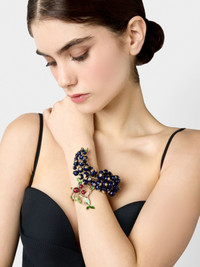 Roger Vivier interprets the garden theme with a joyful and sophisticated style. Faithful reproduction of blueberry and currant branches, this enamelled bangle is the result of refined craftsmanship. FEATURES - Dimensions: 3.1 x 3 x 3 ins - Enamelled hypoallergenic metal - Engraved RV logo detailing - Made in Italy REWB1240200AGKG005