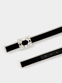Inspired by the beautiful gardens of the Château de Versailles, the Broche Vivier showcases the same symmetry with its intricate crystal buckle. The new Broche Vivier Chain Belt features this distinct Maison signature, created with a soft velvet strap and a distinct chain motif. Wear this refined accessory to add a touch of brilliance to any outfit. Description & details Made in Italy Women's Roger Vivier Broche Vivier Buckle Belt Item crafted in velvet Rhinestone trim Broche Vivier crystal buckle Belt width: 1 in Maintenance and care cards included Branded dustbag Mod: RCWC0AO1000CFEB999