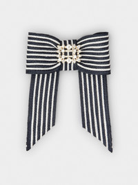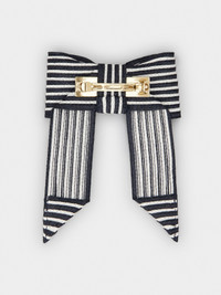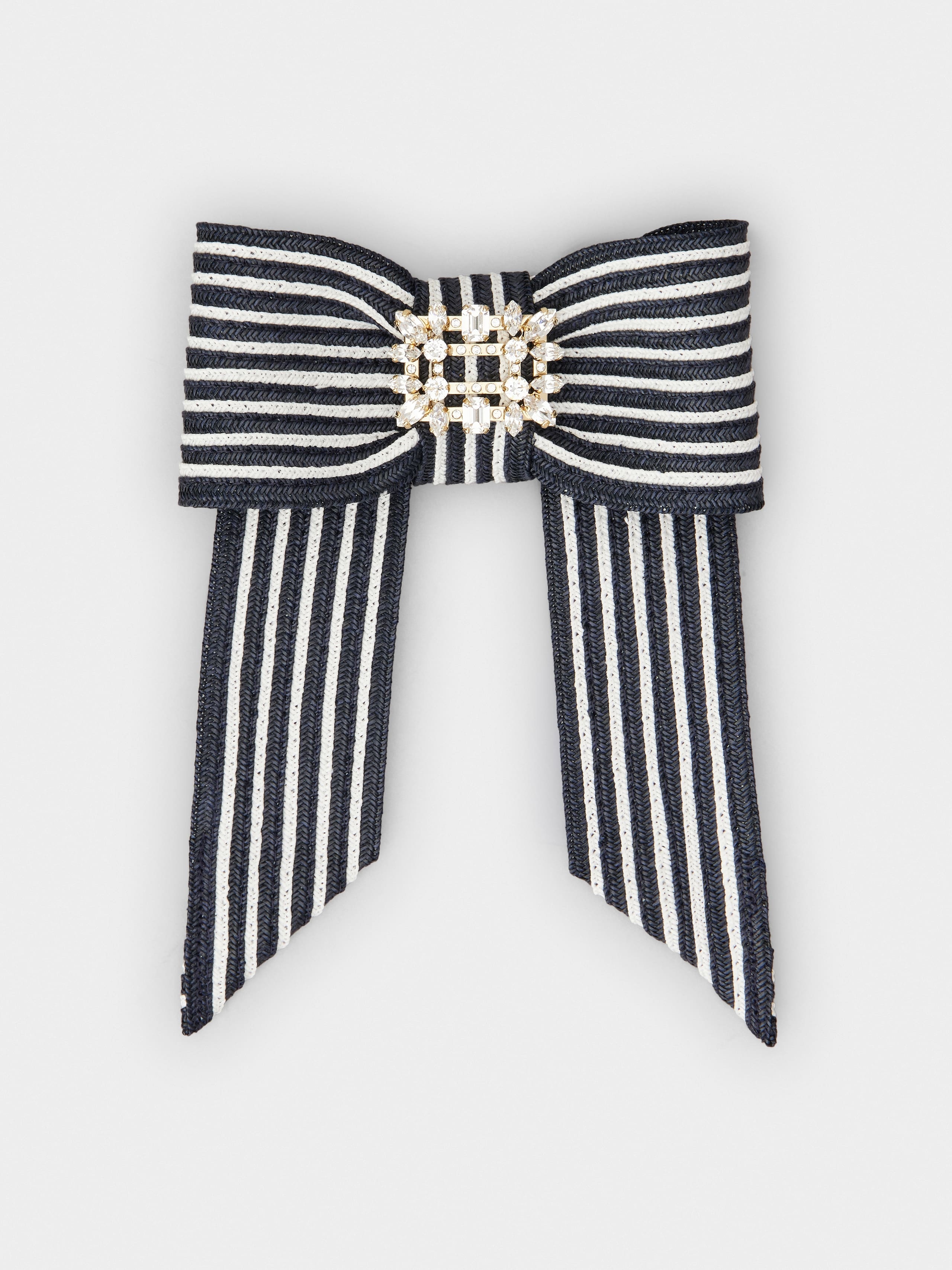 Inspired by the gardens of the Chateau de Versailles, the Broche Vivier collection recalls its enchanting symmetry with its crystal buckle. Crafted in raffia with striped pattern, this hair clip is adorned by this emblem of the Maison: a bold touch to your hairstyle. Description & details Dimensions: 5.3 x 6.9 x 1.2 ins Raffia Crystal buckle Metal clip Made in Italy Mod: REWAC364100TL6029F
