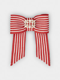 Inspired by the gardens of the Chateau de Versailles, the Broche Vivier collection recalls its enchanting symmetry with its crystal buckle. Crafted in raffia with striped pattern, this hair clip is adorned by this emblem of the Maison: a bold touch to your hairstyle. Description & details Dimensions: 5.3 x 6.9 x 1.2 ins Raffia Crystal buckle Metal clip Made in Italy Mod: REWAC364100TL61M87
