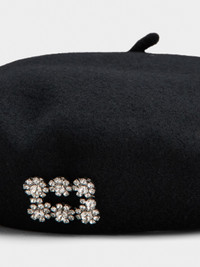 The Efflorescence buckle is characterized by shiny flowers made of crystals. This jewel with Rococo reminiscences adorns this beret in wool. A precious accessory that complements the urban look of the Vivier woman. FEATURES - Virgin wool - Crystal buckle - Metal RV logo - Made in Italy RQWH0121100URCB999