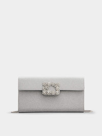 Clutch in glitter with iconic Maison's buckle composed of crystal flowers. Refined and precious, with metal chain strap, it is perfect for an important occasion. FEATURES - Dimensions: 9.4 x 5.1 x 1.4 ins - Glitter fabric - Metal chain strap - Satin interior - Crystal buckle RBWAMFD0200JQO1920