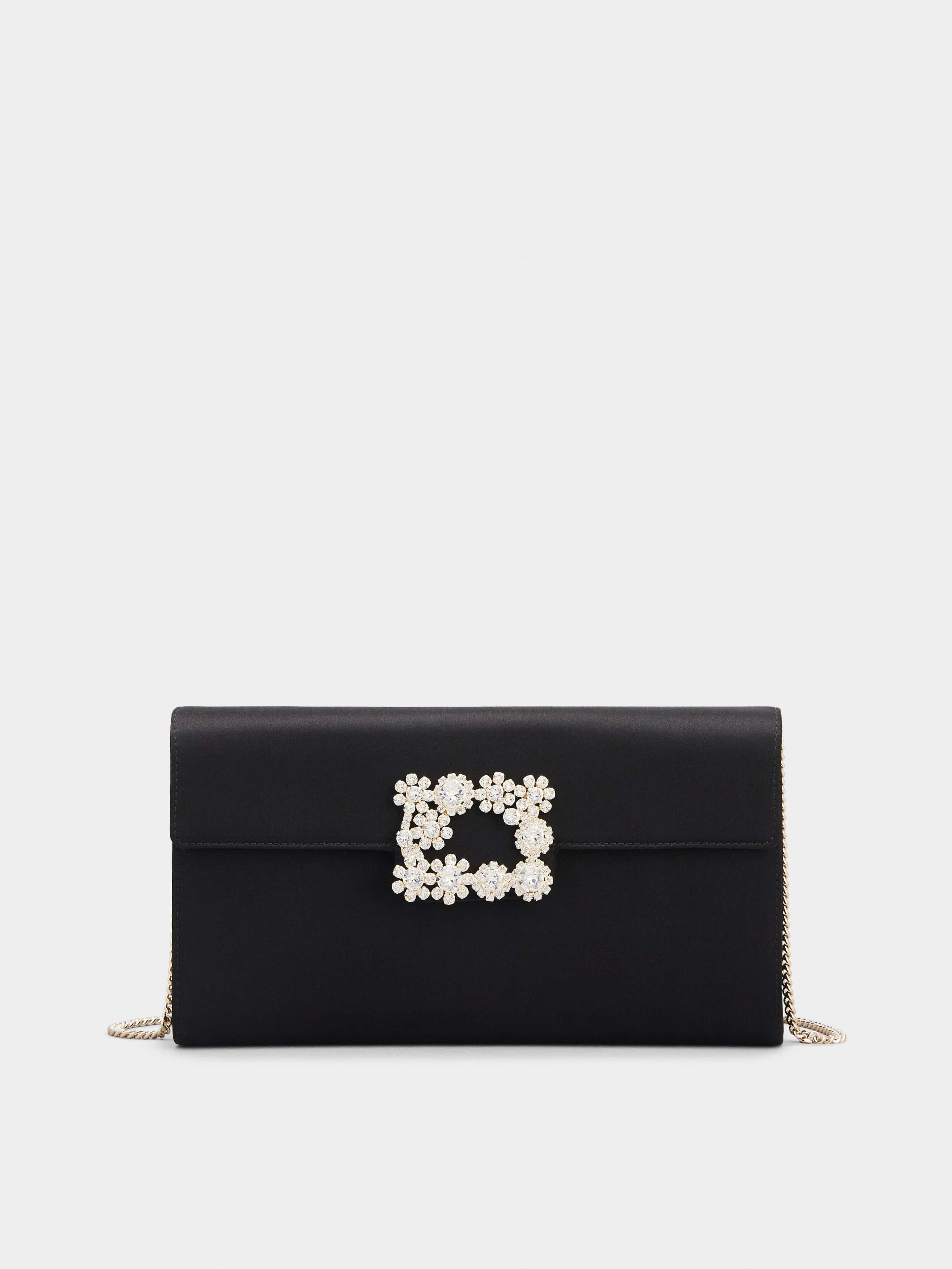 Flower Strass Buckle Clutch in Satin