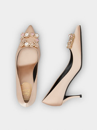 Characterized by a refined crystal buckle, the Efflorescence pumps are handcrafted in satin. Here with a slim high heel, they are a timeless choice for an evening look. FEATURES - Silk blend satin - Crystal buckle - Leather insole - Sin heel 2.6 ins approx - Leather outer sole RVW41417620RS0M014