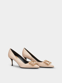 Flower Strass Buckle Pumps in Satin