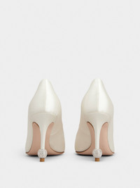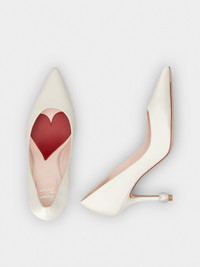 Embellished with a boule heel, these pumps in satin embody refinement. Their emblematic heart, delicately placed on the insole, adds a sophisticated and irresistibly charming touch to your allure. Description & details Silk blend satin Leather insole with heart-shaped insert Covered heel 3.3 ins Crystal boule Leather outer sole Made in Italy Mod: RVW78943010RS0C001