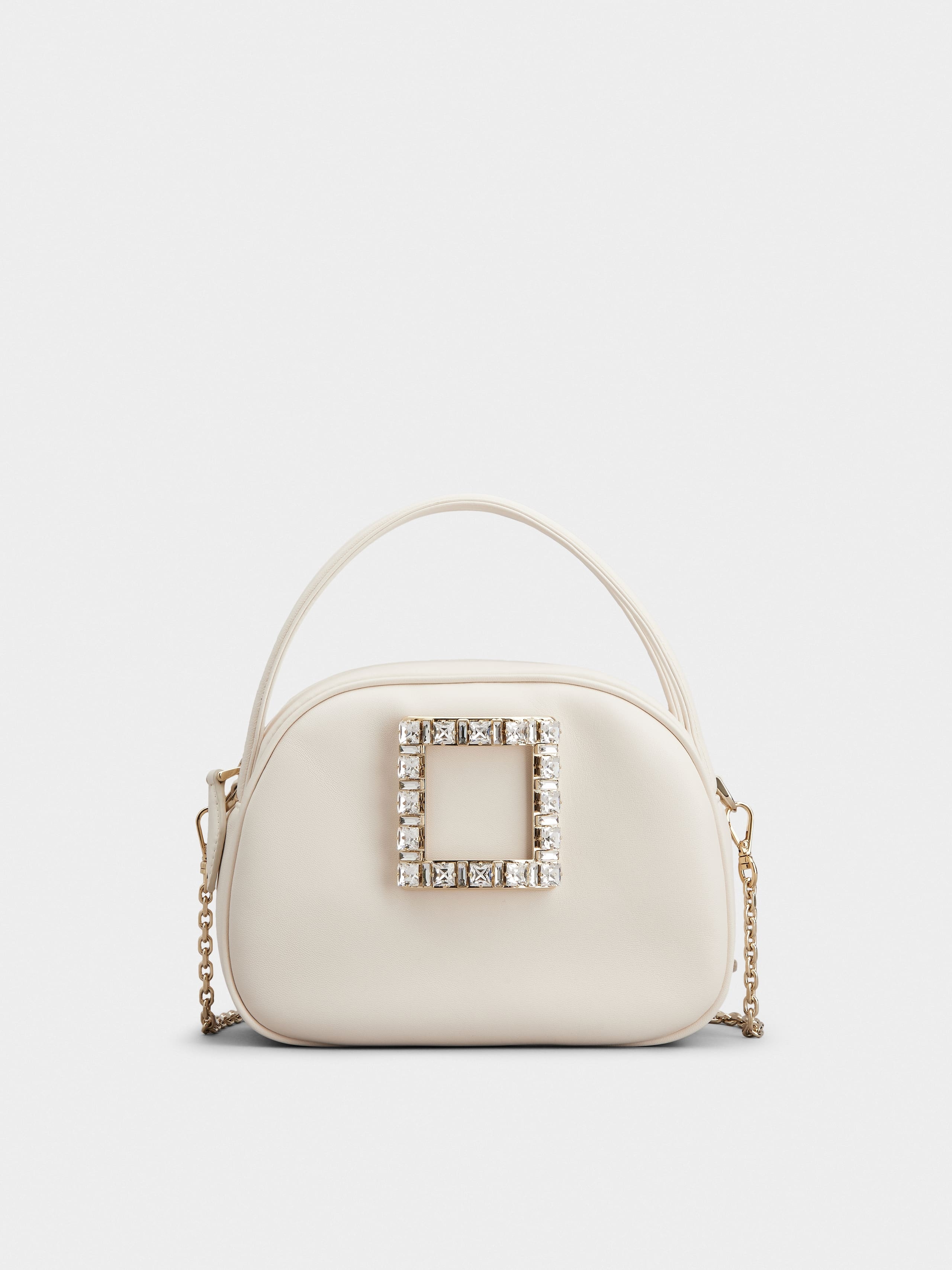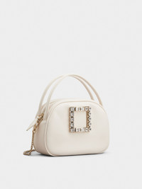 Crafted in leather, the Ladybug is adorned by a shiny crystal buckle. Closed with a zip, this elegant creation features two fixed handles and a removable chain strap. Description & details Dimensions: 7.5 x 5.5 x 2.4 ins Leather Fixed handles Removable chain in metal with leather insert Crystal buckle Zip closure Fabric interior Mod: RBWANMF0101JXVC019