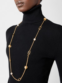 Necklace with floral elements, crystal boules and mini buckles. Adjustable with clasp, it is embellished with the RV charm. FEATURES - Hypoallergenic metal and crystals - Adjustable clasp closure - Made in Italy REWCOA80200AGKG203