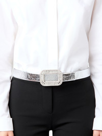 The iconic Pilgrim buckle is adorned with baguette crystals that give it all its sparkle. The crystals are applied by hand, using a high jewelry technique. This belt in metallic leather ensures elegance for any occasion. FEATURES - Ovine leather - Crystal buckle - Belt width: 1.2 ins - Made in Italy RCWC0681100T0HB200