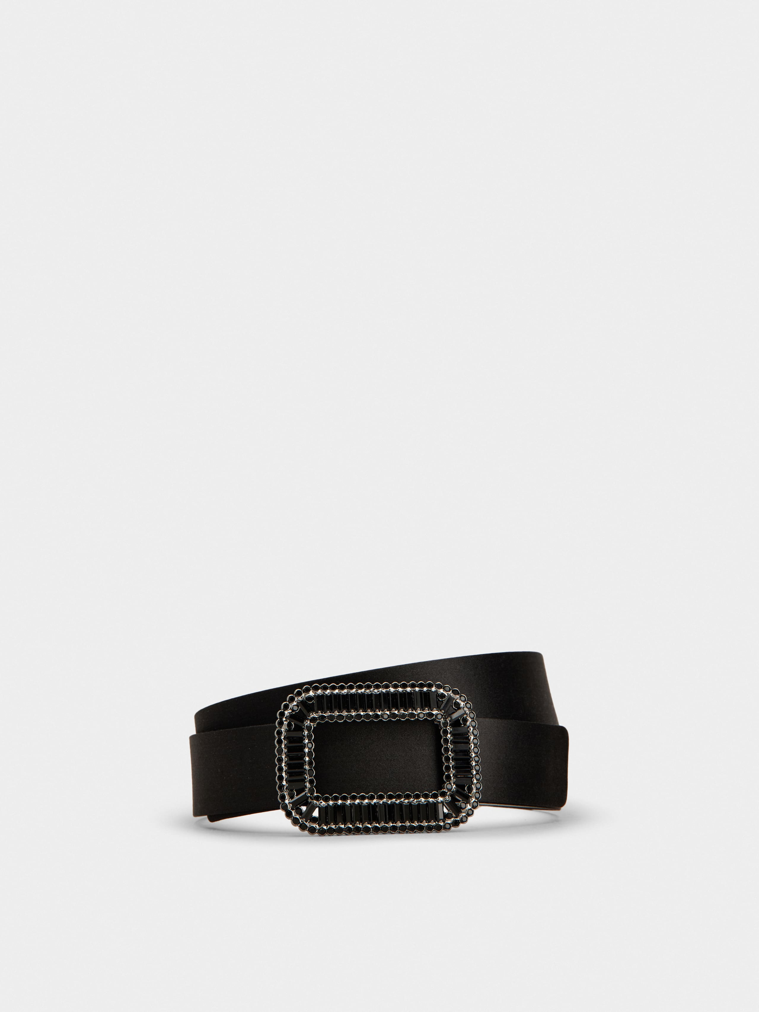 The iconic Pilgrim buckle is adorned with baguette crystals that give it all its sparkle. The crystals are applied by hand, using a high jewelry technique. This belt in satin ensures elegance for any occasion. FEATURES - Belt width: 1.2 ins - Silk blend satin - Crystal buckle - Made in Italy RCWC0681102RS0B999