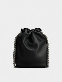 The iconic Pilgrim buckle is adorned with baguette crystals that give it all its sparkle. The crystals are applied by hand, using a high jewelry technique. This micro bag in nappa leather closes using a shoulder strap with a double metal chain. Elegance for every occasion. Description & details Dimensions: L 5.5 ins x H 7.5 ins x D 1.4 ins Ovine nappa leather Metal drawstring-shoulder strap with leather insert Crystal buckle Fabric lining Internal pocket Made in Italy Mod: RBWABDK0000YDRB999