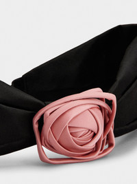 Delicate yet bold, romantic yet proud, the rose embodies femininity. Born in 1965, a symbol dear to Monsieur Vivier, it is reborn in refined floral embellishments: sculpted rosebuds and twisted volutes. The Rose Vivier is one of the House's most bewitching emblems and adorns this satin bandeau with a mini side buckle. Description & details Silk blend satin Mini crystal side buckle Elastic insert on the back Made in Italy Mod: REWAC1111009121I49
