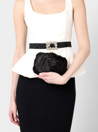 Delicate yet bold, romantic yet proud, the rose embodies femininity. Born in 1965, a symbol dear to Monsieur Vivier, it is reborn in refined floral embellishments: sculpted rosebuds and twisted volutes. The Rose Vivier is one of the House's most bewitching emblems. Closed with a metallic element reminiscent of a branch, this compact clutch can be carried by hand or worn on the shoulder with the thin chain strap. Crafted in satin with refined pleated detailing, it adds a touch of sophisticated elegance to your evening outfit. FEATURES - Dimensions: L 6.7 ins x H 4.3 ins x D 2 ins - Silk blend satin - Metal chain strap - Metal snap closure - Satin lining - Internal pocket - Made inn Italy RBWAPBD1100RS0B999