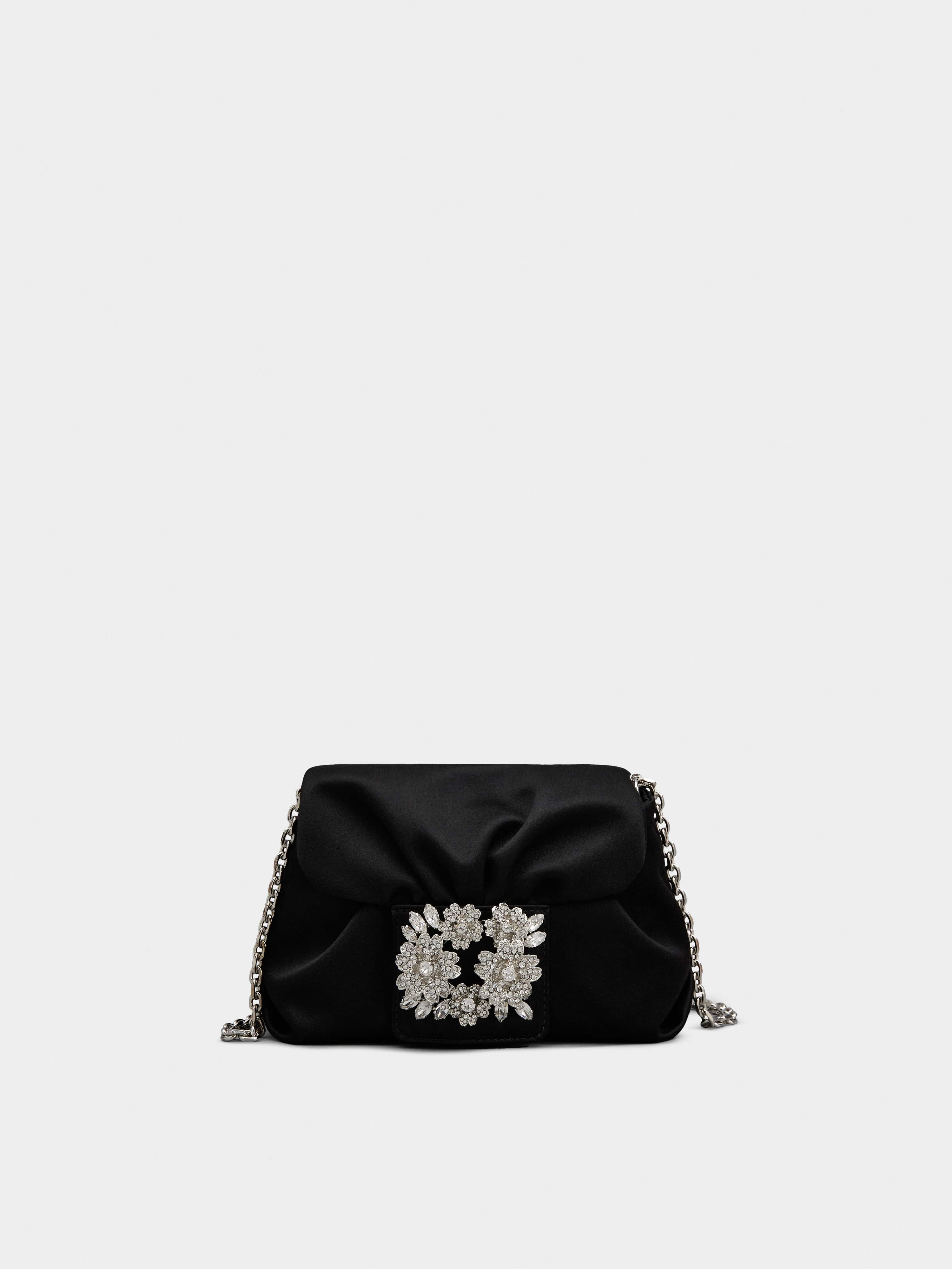 RV Bouquet Strass Buckle Drapé Micro Bag in Satin
