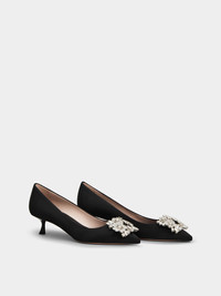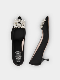 The Efflorescence pumps are embellished by the emblematic jewelled buckle with crystal flowers. Handcrafted in satin, they are a timeless style, for your most exclusive soirees. FEATURES - Silk blend satin - Tapered toe - Crystal buckle - Lacquered heel 1.8 ins - Leather outer sole RVW54328020RS0B999