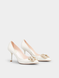 RV Bouquet Strass Pearl Buckle Pumps in Satin