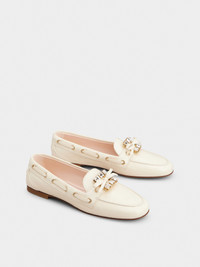 Reminiscent of the Sixties, the Tres Vivier buckle has become an icon. Composed of square crystals, it is the final touch on these loafers. Crafted in patent leather with a bow on the front, they are elegant and comfortable at once. FEATURES - Patent calfskin leather - Woven tie - Crystal buckle - Leather lining and insole - Leather outer sole - Made in Italy RVW74344090TM6C019