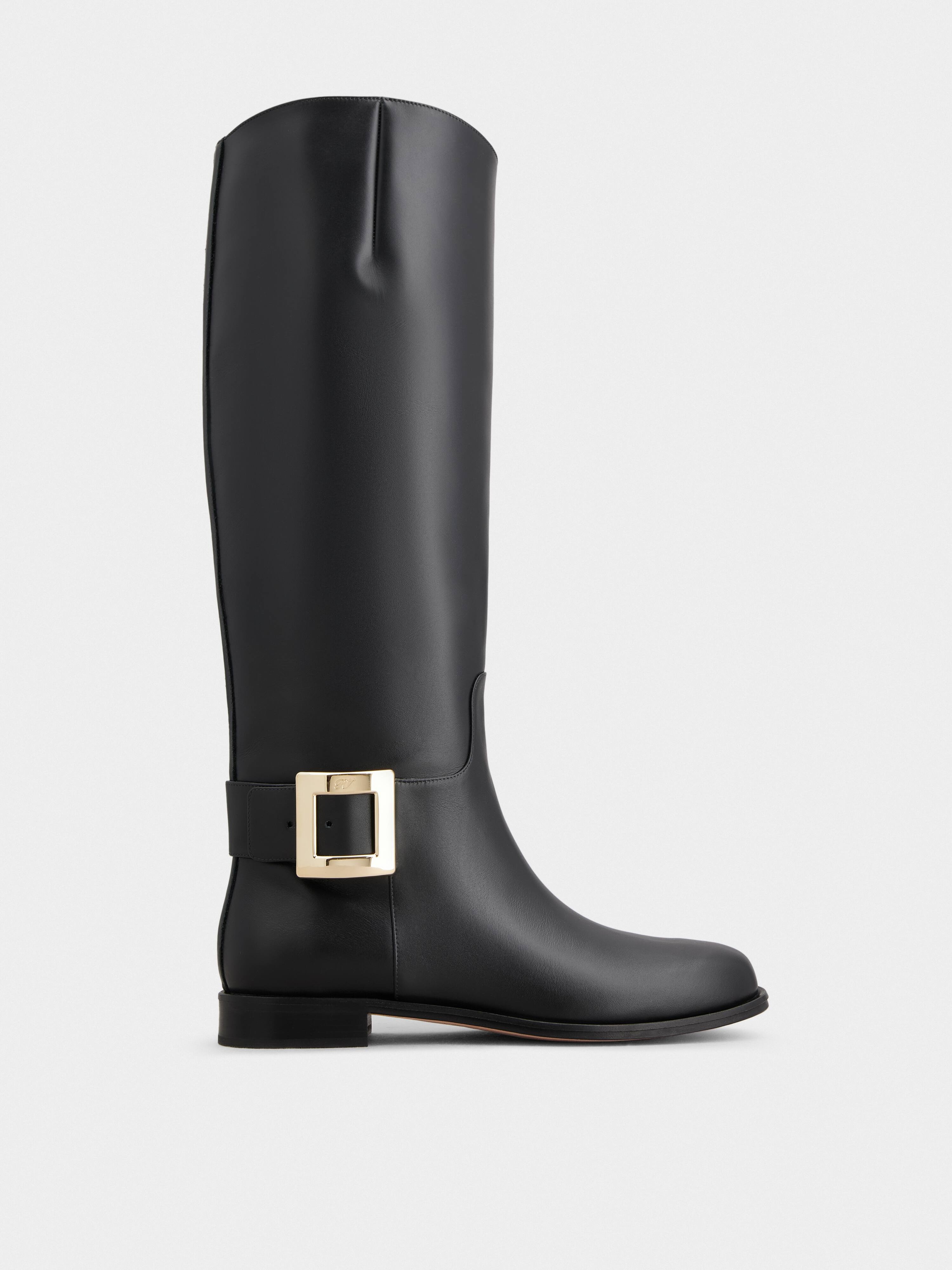 Reminiscent of the Sixties, the Tres Vivier buckle has become an icon. Here in metal version, it adorns the side of these riding-style boots in leather, with leather outer sole. Metropolitan elegance with a distinctive Vivier touch . FEATURES - Calfskin leather - Metal side buckle - Leather insole - Leather outer sole - Made in Italy RVW70040650SOAB999