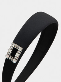 Reminiscent of the Sixties, the Tres Vivier buckle has become an icon. Composed of square crystals, it is the centerpiece of this hairband in grosgrain. A precious touch to your hairstyle. FEATURES - Fabric - Crystal buckles - Roger Vivier logo on the inside - Made in Italy REWAC8101016N1B999