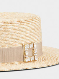 Reminiscent of the Sixties, the Tres Vivier buckle has become an icon. Composed of square crystals, it is the final touch on this refined hat in raffia. Description & details Raffia Grosgrain insert Crystal buckle Mod: RQWH0261100TL7C600