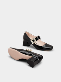 Inspired by the Belle Vivier, the Très Vivier collection is now an icon on its own. The Très Vivier Rhinestone Buckle Babies Pumps are handcrafted in patent leather, with a crystal buckle enhancing the strap. A classic Mary Jane model revisited in Vivier style. Description & details Made in Italy Patent leather upper Adjustable strap Crystal buckle Structured heel 1.8 ins Leather outsole Maintenance and care cards included Branded dustbag Mod: RVW51934780D1PB999