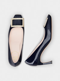 Inspired by the emblematic Belle Vivier buckle, these pumps feature the Trompette heel, with a slightly flared curved shape. Handcrafted in patent leather, they are the ally of elegant femininity. FEATURES - Patent calfskin leather - Squared toe - Metal buckle - Trompette heel - Leather insole - Heel height 2.8 ins - Leather outer sole - Made in Italy RVW40015280D1P9997