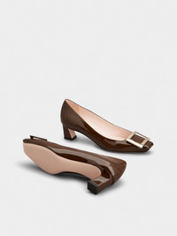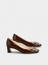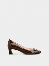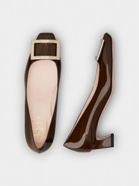 Inspired by the historic Belle Vivier, these elegant pumps feature a Trompette heel, with a slightly flared curved shape. Handcrafted in patent leather with the iconic metal buckle, they combine two emblems of the Maison in one timeless creation. Description & details Patent calfskin leather Squared toe Metal buckle Leather insole Trompette heel Heel height 1.8 ins Leather outer sole Made in Italy Mod: RVW44815280D1PS604