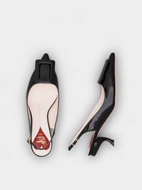Launched in 1963, the Virgule heel is one of the Maison's most famous creations. Its bold curves combine comfort and elegance. The Virgule Slingback pumps in patent leather are adorned by a lacquered buckle. Complemented by an insole with the emblematic heart, they accompany you throughout the day with their sophisticated style. FEATURES - Patent leather - Tapered toe - Lacquered buckle - Heel strap - Leather insole with heart-shaped insert - Lacquered Virgule heel - Heel height 2.2 ins - Leather outer sole - Made in Italy RVW63831440D1PB999