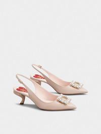 Launched in 1963, the Virgule heel is one of the Maison's most famous creations. Its bold curves combine comfort and elegance. The Virgule Slingback pumps in patent leather are adorned by a crystal buckle. Complemented by an insole with the emblematic heart, they accompany you throughout the day with their sophisticated style. FEATURES - Patent leather - Tapered toe - Crystal buckle - Heel strap - Leather insole with heart-shaped insert - Lacquered Virgule heel - Heel height 2.2 ins - Leather outer sole - Made in Italy RVW63834500D1PC211