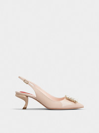 Virgule Strass Buckle Slingback Pumps in Patent Leather