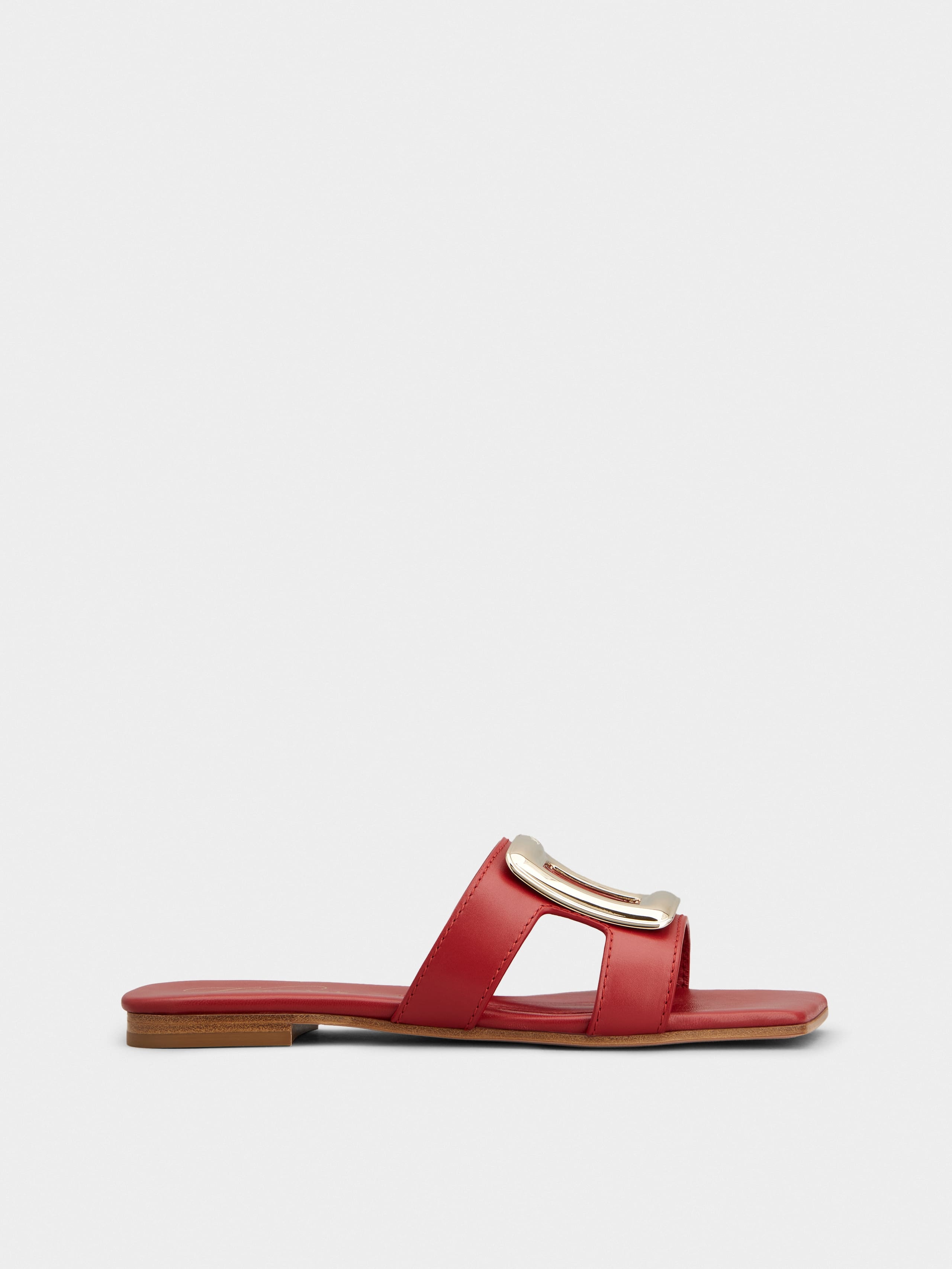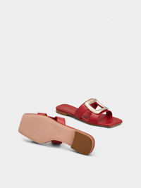 The Viv' Choc buckle, with its distinctive rounded shape, adorns these mules in leather with leather outer sole. Characterized by a squared toe, this versatile summer creation is complemented by the emblematic heart-shaped insole. Description & details Calfskin leather Metal buckle Leather insole with heart-shaped insert Leather outer sole Made in Italy Mod: RVW74738070BSSR021